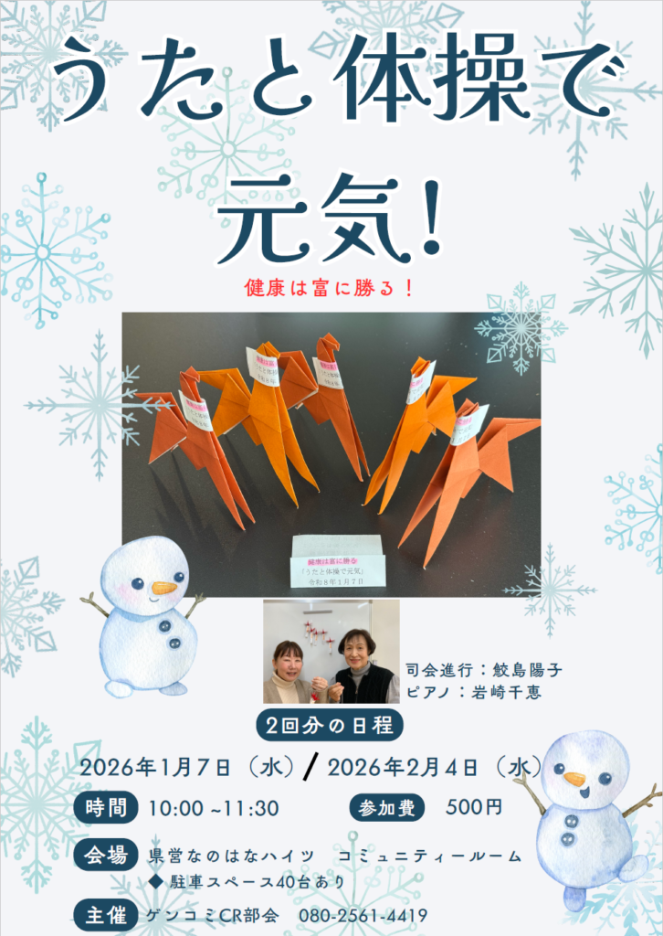 ところ:県営なのはなハイツ(旧県営テラス)集会室 →地図はこちら