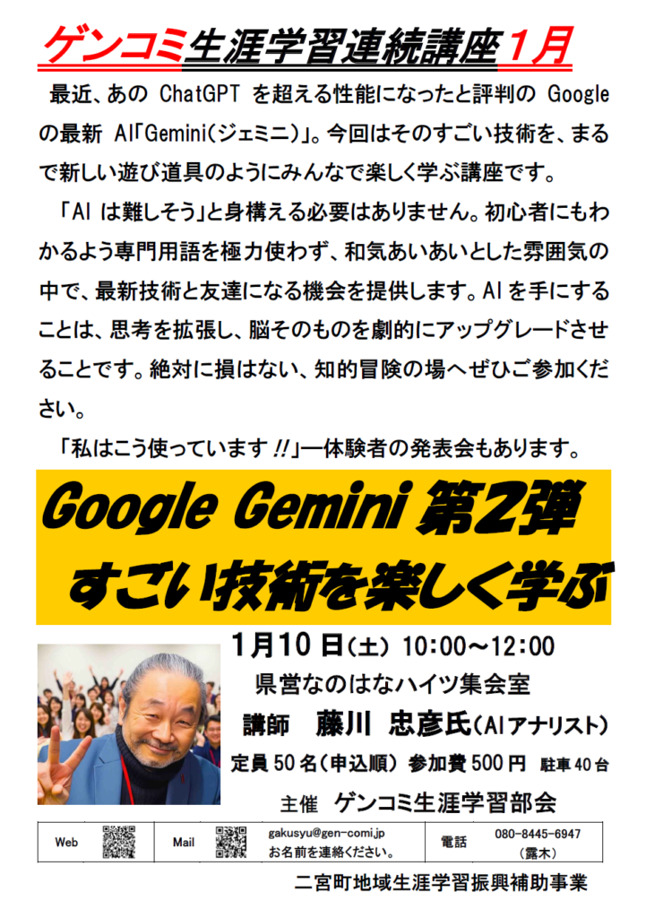 メール申込み gakusyu@gen-comi.jp お名前と講座名をご連絡ください。