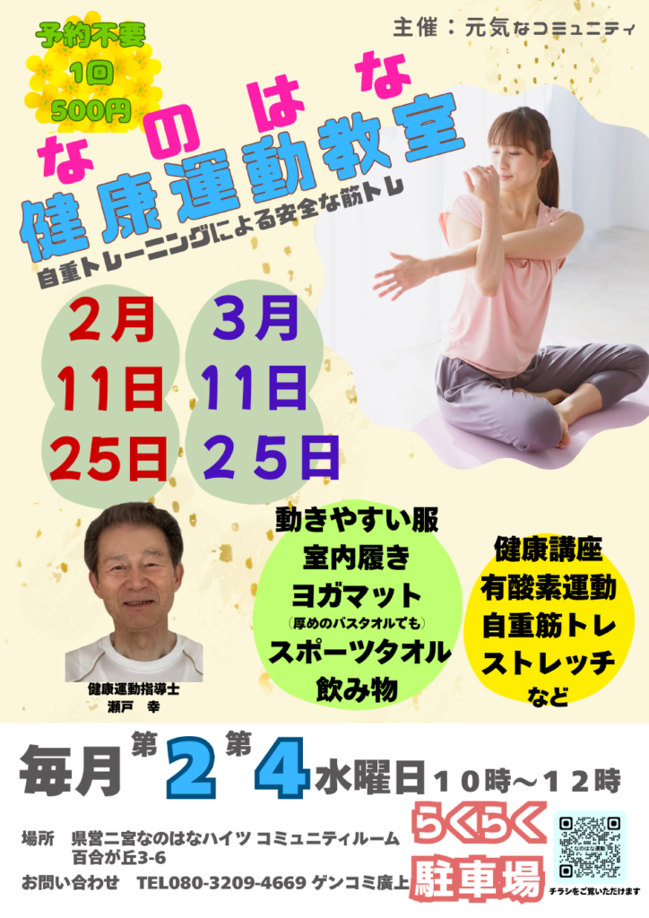 ところ:県営なのはなハイツ(旧県営テラス)集会室 →地図はこちら