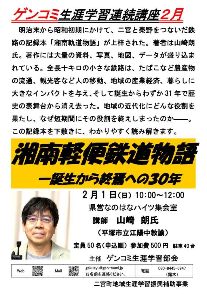 明治末から昭和初期にかけて、二宮と秦野をつないだ鉄路の記録本「湘南軌道物語」が上梓された。著者は山崎朗氏。著作には大量の資料、写真、地図、データが盛り込まれている。全長十キロの小さな鉄路は、たばこなど農産物の流通、観光客など人の移動、地域の産業経済、暮らしに大きなインパクトを与え、そして誕生からわずか31年で歴史の表舞台から消え去った。地域の近代化にどんな役割を果たし、なぜ短期間にその役割を終えしまったのか――。この記録本を下敷きに、わかりやすく読み解きます。
