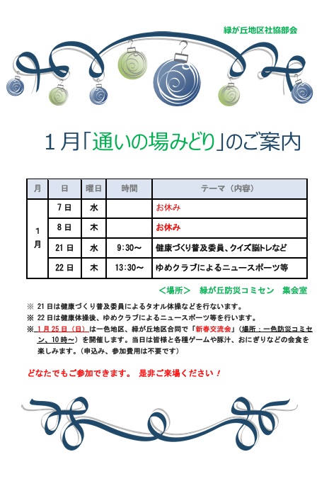 緑が丘地区「通いの場みどり」は地域のコミュニティの場です。