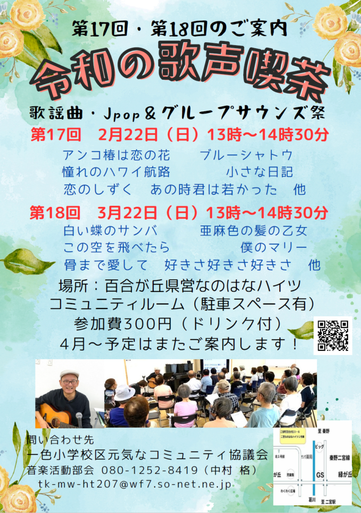 2/22, 3/22開催:令和の歌声喫茶