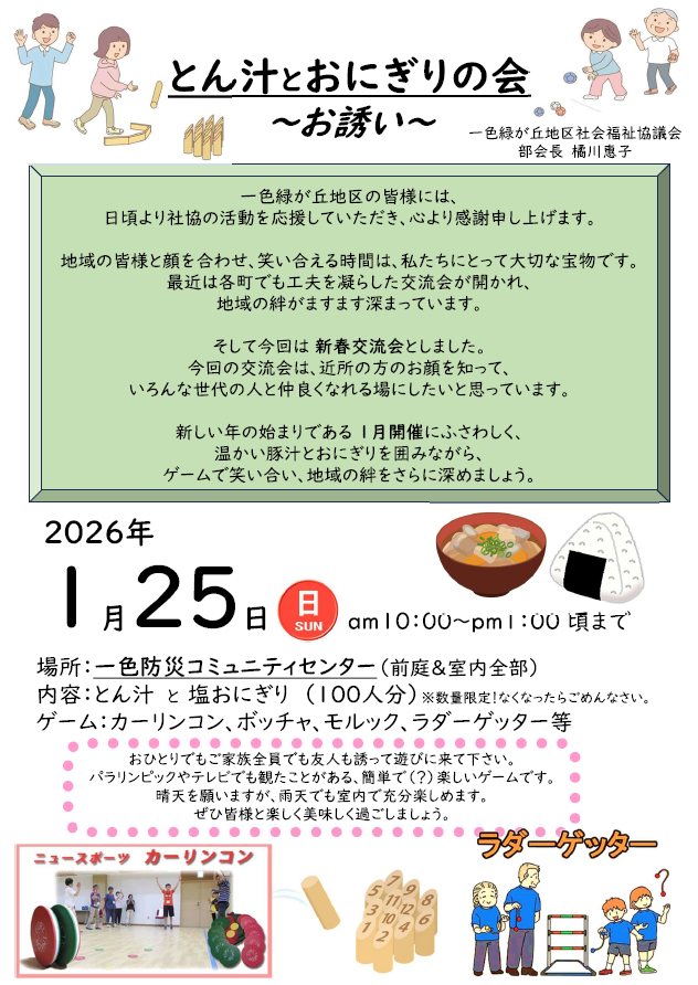 1/25開催:一色緑が丘地区社協「とん汁とおにぎりの会」
