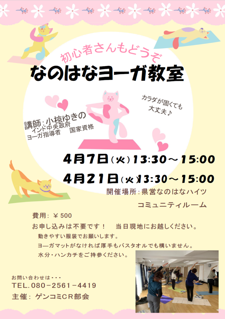 4/7、4/21開催:なのはなヨーガ教室